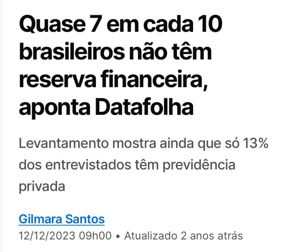 Você já parou para pensar onde estará financeiramente daqui a 10, 15 anos? 95% das pessoas chegam aos 50-60 anos sem reservas suficientes para manter o padrão de vida que desejam. O tempo não para, e cada mês que passa sem um planejamento adequado é uma oportunidade perdida de construir riqueza.